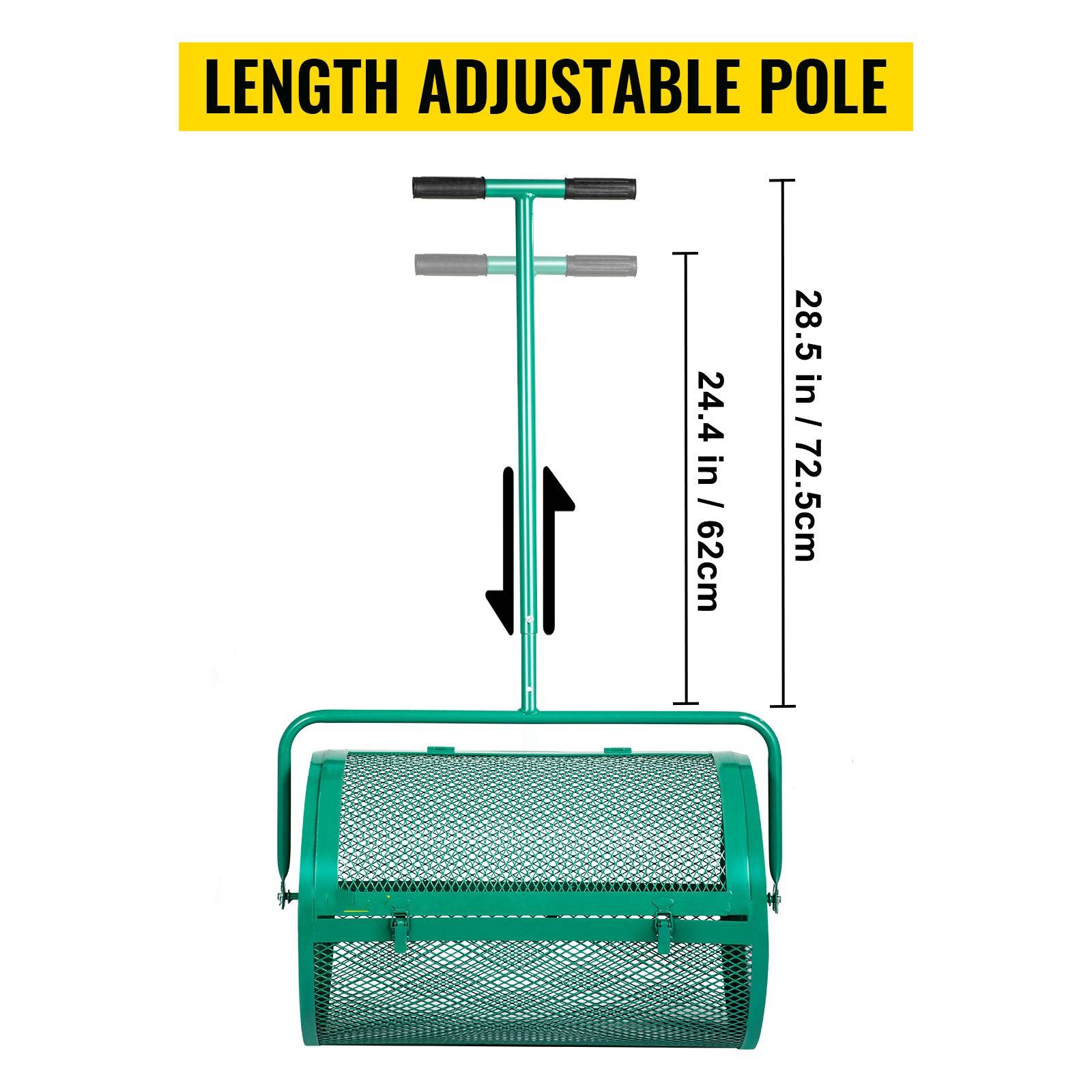 - SIMPLE APPLICATION - For this soil spreader, it's pretty simple to use: install it first; then fill it with compost; then lock the latches; then you're ready to go.