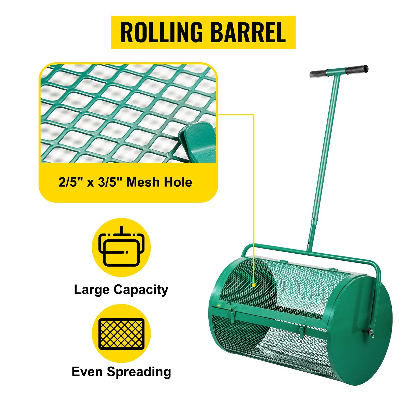 Looking for a garden tool helper? Our peat moss spreader is featured with a 24-inch barrel, which makes it easy to use, especially with the lawn roller that will help with any topdressing material to flourish your lawn and garden effortlessly. It will help you to improve the germination rate of grass seed when you incorporate it into your soil.